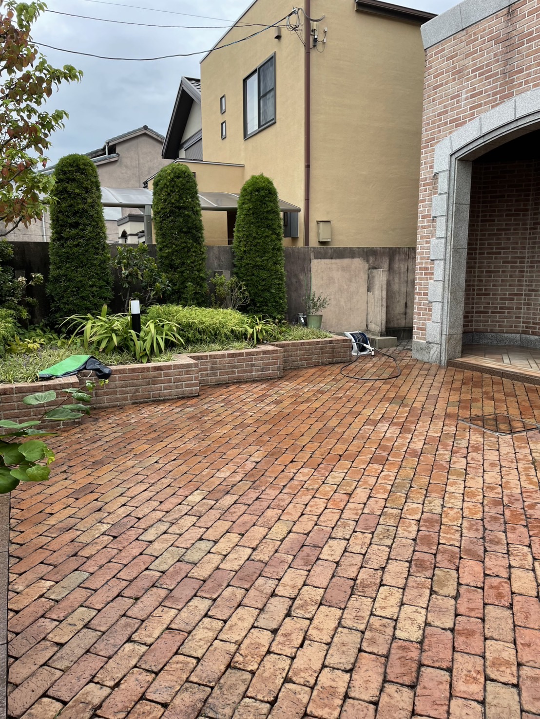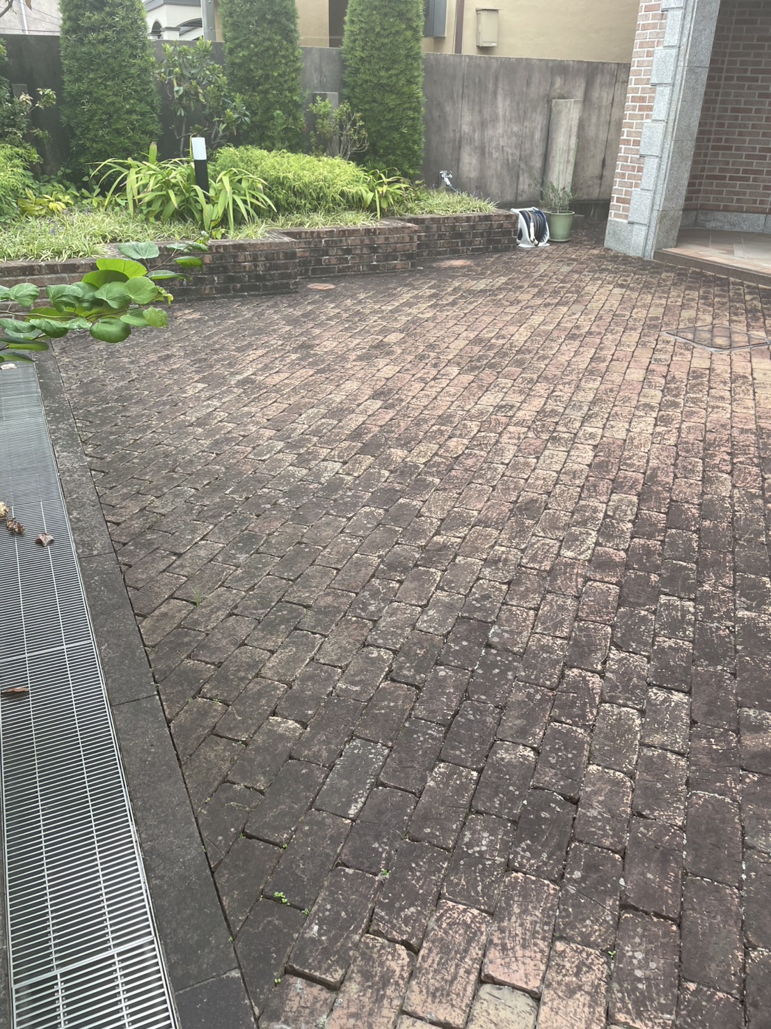 定期で清掃に入らせていただいておりますお客様からのご相談でした。高圧洗浄機を2台導入してひたすら打つべし!草花が生えておりますので環境のことも考え薬品は植物由来の自然のものを使用しました。写真の通りピッカピカでございます!※作業後の写真がまだ乾ききっておりませんが、乾けば一層ピカピカになっているかと思います。通常清掃だけでなく付随してこうしたご依頼をいただけるのもありがたいことです!外壁や外床などの汚れが気になる方はぜひご相談ください。ちなみに、よくTVCMや通販番組でも紹介される高圧洗浄器ですが、はっきり言います!あんな笑顔で気楽に使えません!笑 水道の何十倍の水圧で吹き出すわけですからその反動たるやなかなかのもの。。。1時間も吹き続ければ両腕、首はパンパンになること間違いなしですので騙されないでください笑 今日も一日ありがとうございました。